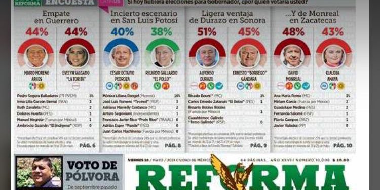 Medios de circulación nacional como el Diario Reforma y el Heraldo de México, destacan que el candidato a la gubernatura de la Coalición “Sí por San Luis Potosí”, Octavio Pedroza Gaitán encabeza las preferencias electorales para el 6 de junio, cuyo porcentaje de diferencia coincide en ambos sondeos.