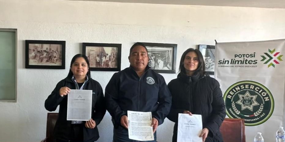La Secretaría de Seguridad y Protección Ciudadana del Estado, a través de la Dirección General de Prevención y Reinserción Social, concretó la firma de un convenio de colaboración en el Centro Estatal de Reinserción Social de San Luis Potosí con la empresa “Casa Teenek” Interiorismo y Mobiliario, con el propósito de fortalecer los procesos de reinserción social de las personas privadas de la libertad mediante actividades productivas.