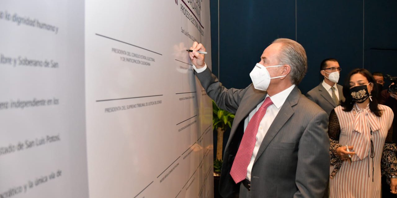 San Luis Potosí.- En el marco de la firma de la Declaratoria de civilidad por los Derechos de la ciudadanía del proceso electoral 2020-2021 que suscribieron el Gobernador del Estado, Juan Manuel Carreras López y la Consejera Presidenta del Consejo Estatal Electoral y de Participación Ciudadana (CEEPAC), Laura Elena Fonseca Leal, así como diferentes instancias, el jefe del ejecutivo convocó a los actores políticos y sociales a hacer de las próximas elecciones una oportunidad para fortalecer la democracia.