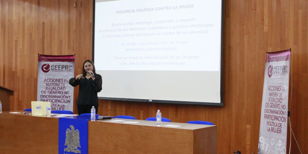 En el desarrollo de su exposición, hizo un recorrido histórico sobre las luchas y obstáculos que han enfrentado las mujeres en materia de derechos políticos. Explicó también cómo las mujeres siguen siendo víctimas de la violencia política de género e invitó a los asistentes a identificar, prevenir y sancionar estas conductas que obstaculizan los derechos fundamentales de todas ellas.