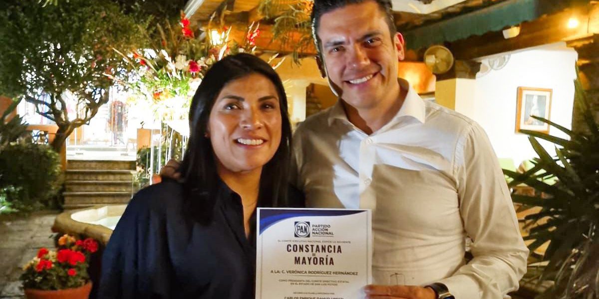 También, fue durante la misma reunión Nacional con presidentas y presidentes estatales del PAN, en donde Verónica Rodríguez recibió de manos del dirigente nacional, Jorge Romero, su constancia de mayoría que la acredita como presidenta estatal del partido en San Luis Potosí.