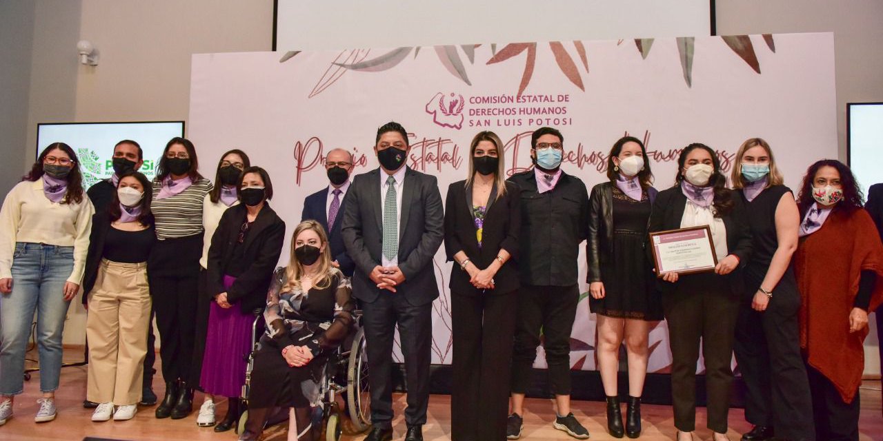 Al reafirmar su compromiso con las causas sociales y el irrestricto respeto a los derechos fundamentales de las personas, y tras denunciar que antes se destinaban millones de pesos a asociaciones simuladas, el Gobernador de San Luis Potosí Ricardo Gallardo Cardona, en el marco de la conmemoración del Día Internacional de los Derechos Humanos, entregó el Premio Estatal de Derechos Humanos 2021 a la Asociación Prosuperación de Niños y Niñas con Down A.C.