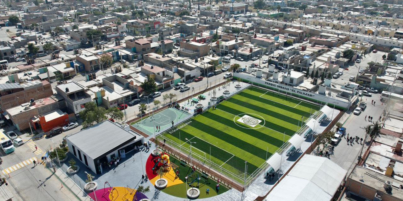 En un ambiente de fiesta, Ricardo Gallardo acompañado de niñas, niños y deportistas, inauguró la Unidad Recreativa El Palmar, con áreas deportivas, un salón de usos múltiples, canchas de fútbol con pasto sintético, gimnasio al aire libre, área infantil, explanada cívica, sanitarios, alumbrado nocturno y jardines, donde dio el penalti inicial en medio del agradecimiento de las familias.