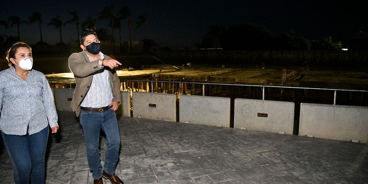 En el primer día de regreso a la actividad, luego de superar el contagio de Covid-19, el Gobernador Ricardo Gallardo Cardona supervisó las obras de rehabilitación de las instalaciones de la Feria Nacional Potosina (FENAPO), que deberán quedar listas antes del 5 de agosto, e inspecciona el espectáculo de las fuentes bailarinas del parque Tangamanga 1.