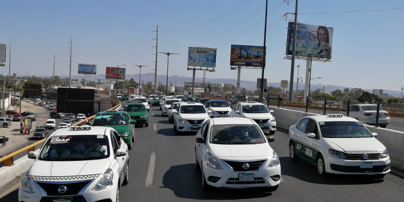 Ruleteros integrantes del Movimiento Nacional de Taxistas, realizaron una manifestación a bordo de sus unidades desde el distribuidor vial Benito Juárez, para seguir por Salvador Nava y Chapultepec hasta llegar al Poder Judicial de la Federación.