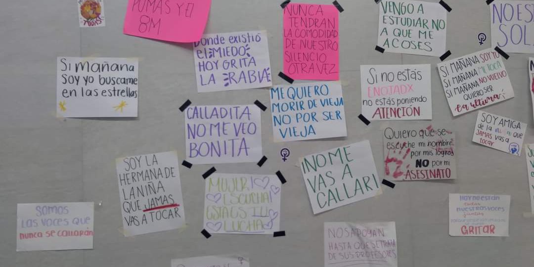 Con motivo del Día Internacional de la Mujer, estudiantes del Colegio de Bachilleres (Cobach) plantel 28 colocaron en el baño de mujeres un tendedero con denuncias de acoso, sin embargo éste fue retirado por la subdirectora del turno vespertino.