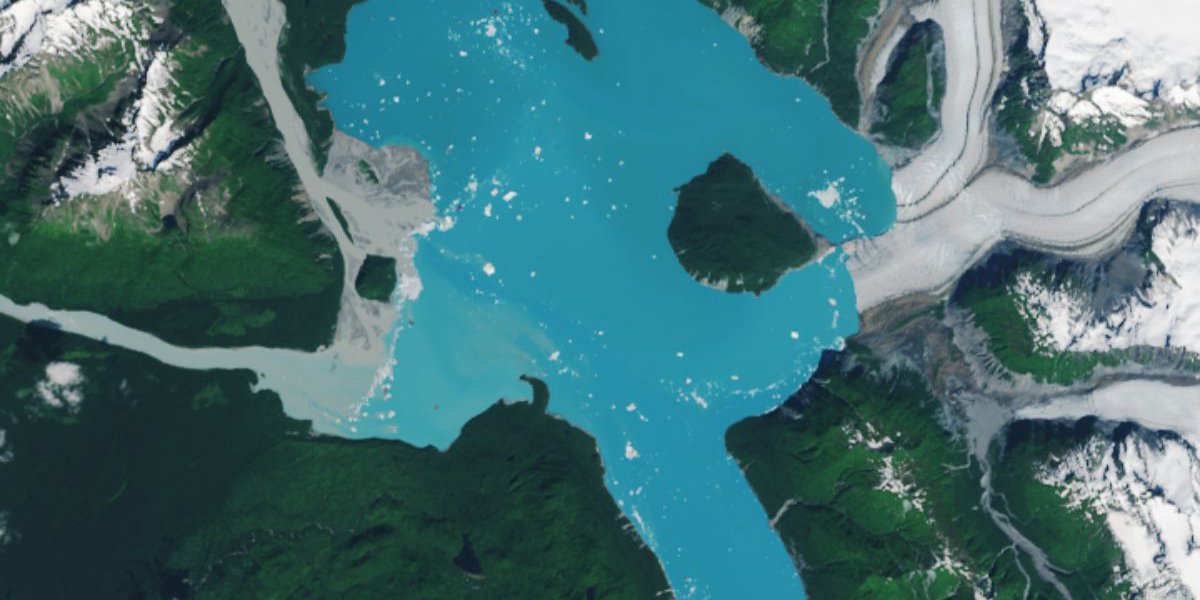 Los glaciares en la llanura costera del sureste de Alaska están retrocediendo, y el agua de deshielo forma lagos en sus frentes. En una de esas crecientes extensiones de agua, ha surgido una nueva isla.