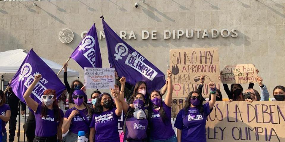 Un grupo de mujeres acampó estos últimos días frente la Cámara de Diputados para exigir la aprobación de la llamada Ley Olimpia, entre ellas la activista Olimpia Coral, quien da nombre a la reforma legal.