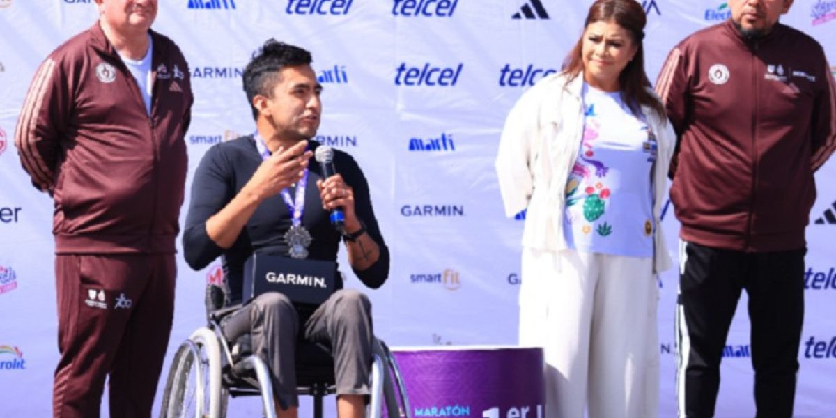Frente a Clara Brugada, Marco Caballero, segundo lugar de la categoría de silla de ruedas del Maratón de la Ciudad de México denunció que la ruta estaba llena de baches, lo que ocasionó que 2 de sus compañeros sufrieran un accidente…