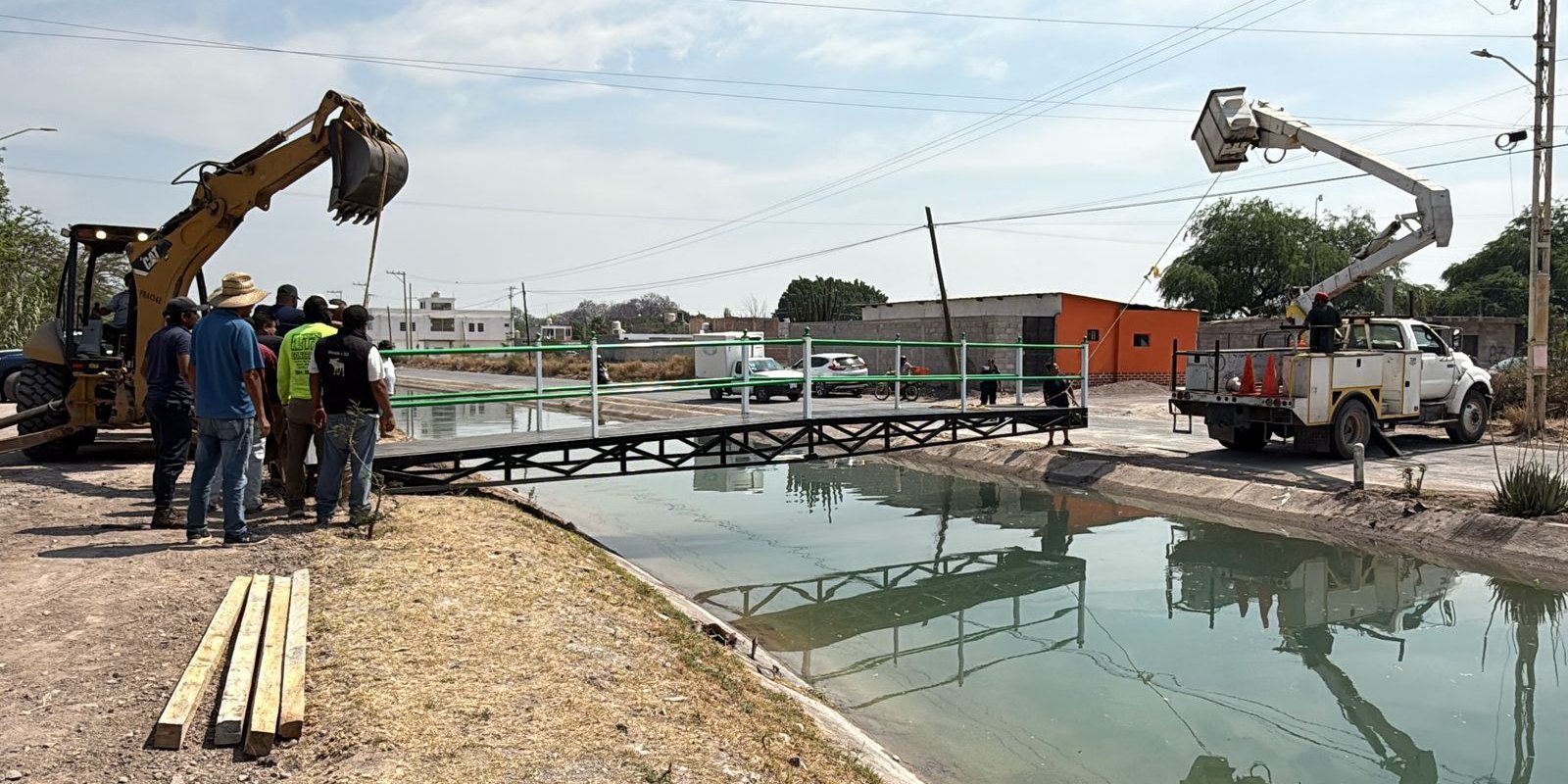 Esta mañana, el alcalde de Ciudad Fernández, Rodolfo Loredo Hernández, supervisó los trabajos de limpieza del canal y la instalación del nuevo puente peatonal en el canal de la Media Luna, a la altura del Centro de Salud en la colonia Campestre Gama.