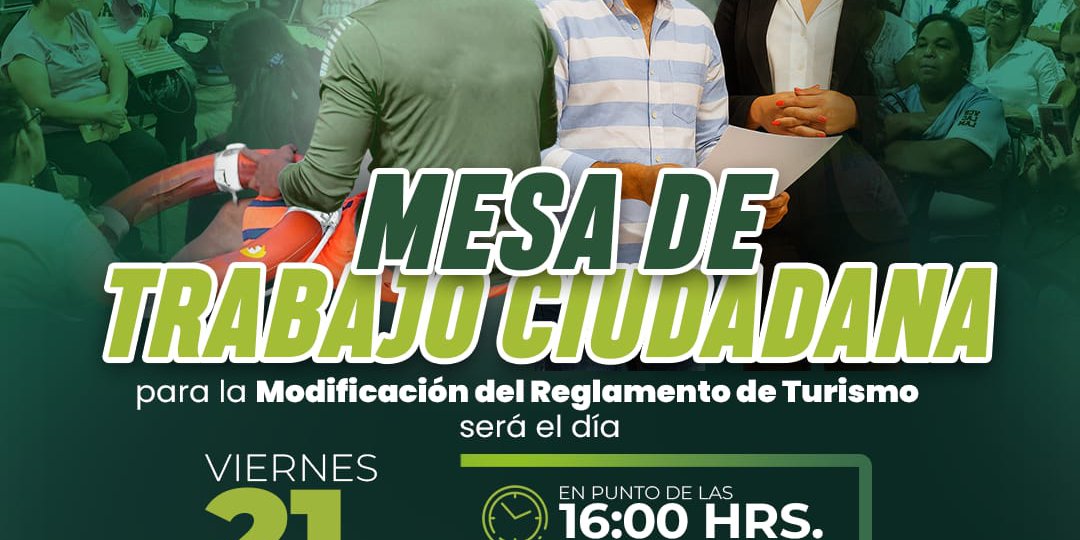 En seguimiento a lo instruido por el Presidente Municipal David Armando Medina Salazar, la invitación está abierta para que los prestadores de servicios turísticos, hoteleros, restauranteros, guías y ciudadanía interesada, se sume y participe en la mesa de trabajo ciudadana para la modificación del Reglamento de Turismo.