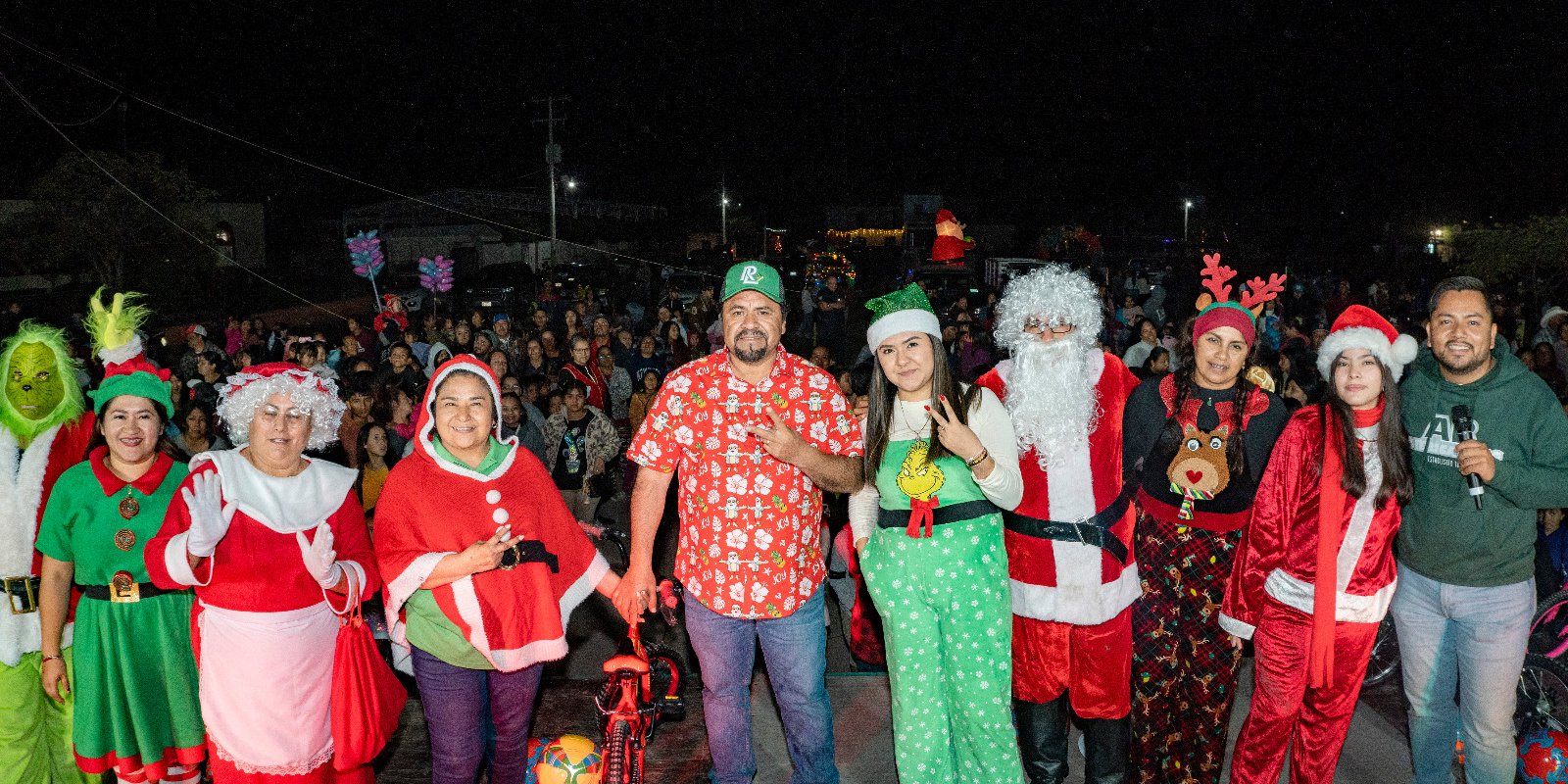 El recorrido navideño, integrado por coloridos carros alegóricos elaborados por las distintas áreas del Ayuntamiento y del SMDIF, avanzó por las comunidades de Labor Vieja, La Noria, Solano, La Reforma, Reformita, 20 de Noviembre, Barrio de Guadalupe y San Pablo, finalizando en Ojo de Agua de Solano, donde cientos de familias salieron a recibir la caravana y sumarse a esta celebración comunitaria.