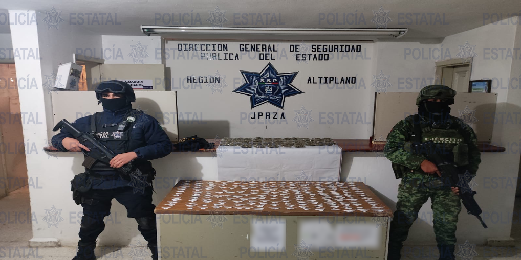MATEHUALA, S.L.P.- En el marco del operativo “Matehuala Seguro”, Policías Estatales en coordinación con personal de la Secretaría de la Defensa Nacional (SEDENA), aseguraron un total de 200 dosis de enervantes en la colonia Infonavit.