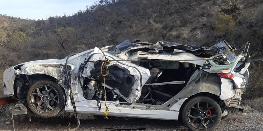 El automóvil marca Ford Focus quedó destrozado totalmente, y con tan solo verlo, se llegó a pensar de fatalidades, sin embargo el joven de 26 años de quien hasta el momento solo se sabe es originario de Ciudad Valles estñá vivo, aunque fue trasladado herido a una clínica de esta ciudad de Rioverde.