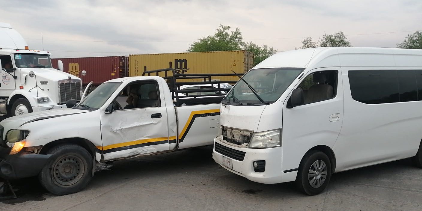 Camioneta llena de policías municipales de Rioverde chocó esta mañana de miércoles contra una camioneta que se le cruzó al paso en la gasolinera de Santa Rita, cuando iban a la Academia de Policía de Ciudad Valles, resultando al menos cuatro de ellos con golpes leves.