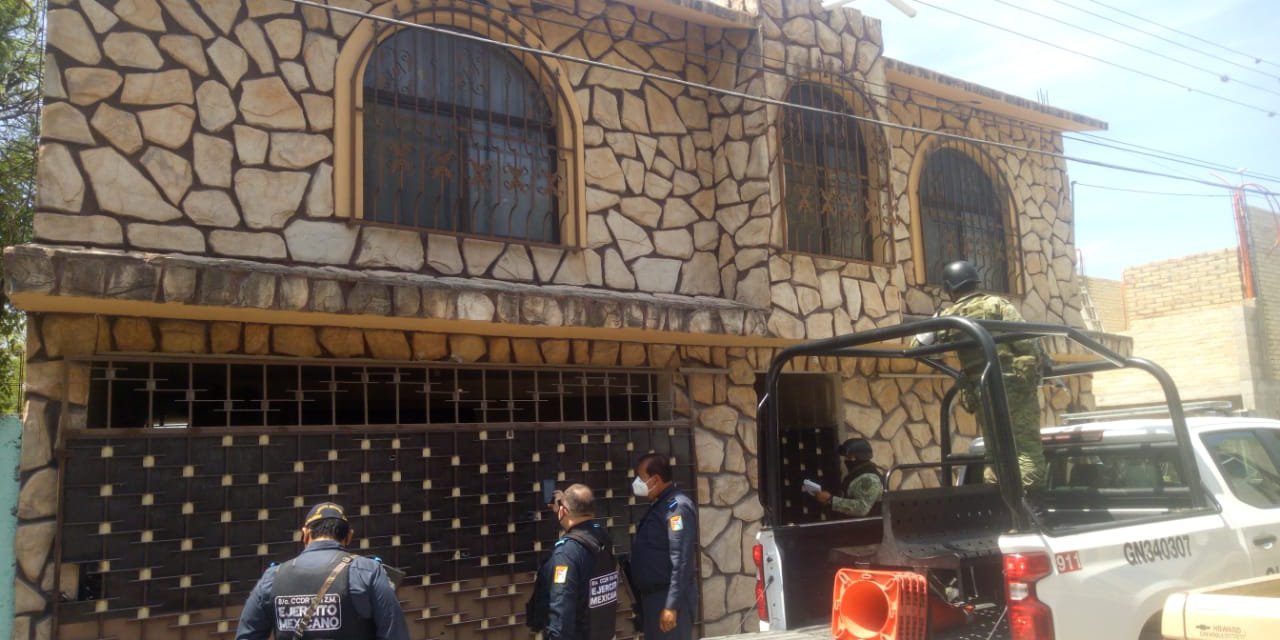 La fachada de la casa ubicada en la calle Marcial Cavazos quedaron las huellas de los disparos, cerca del lugar de la sesión donde estaban elementos de la Guardia Nacional y Policías Municipales, lo que evidenció un franco reto a la autoridad.