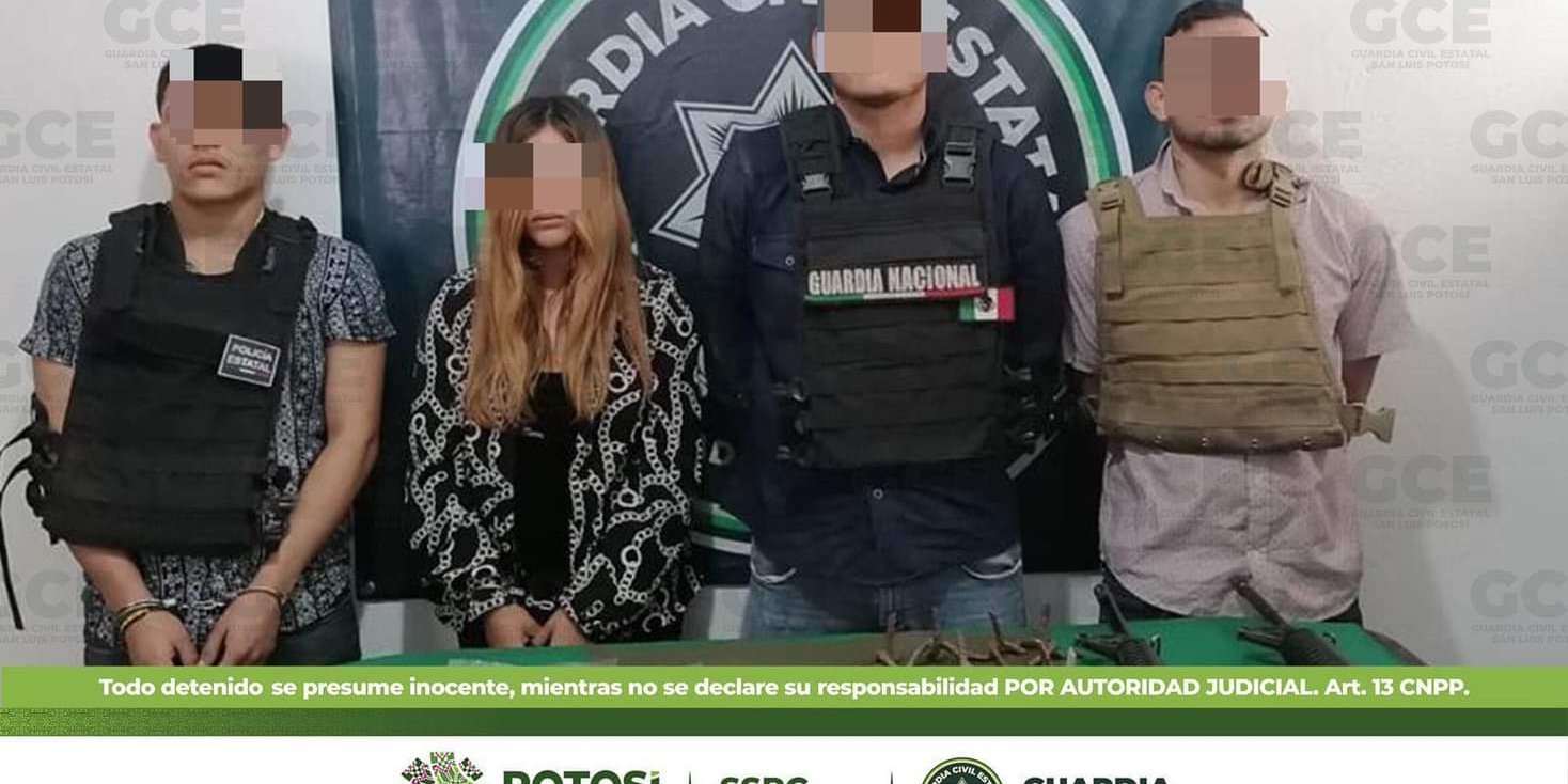 Tras una ligera persecución finalmente los presuntos delincuentes son sometidos; tres hombres originarios de Tamaulipas y una mujer originaria de Rascón SLP presumiblemente traían lo siguiente:
