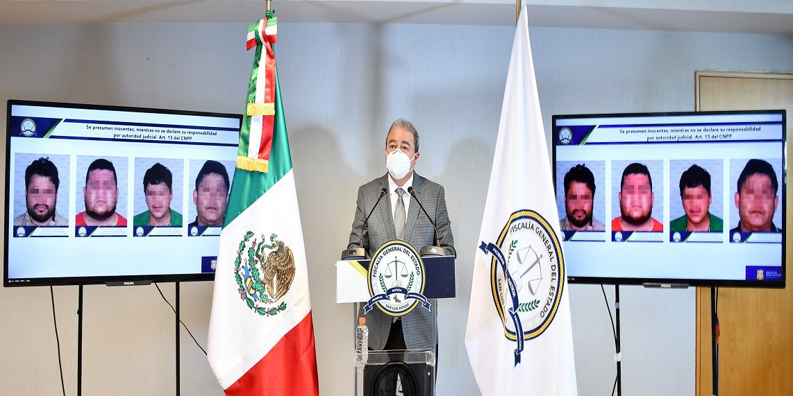 SLP. - El Fiscal General del Estado de San Luis Potosí informó la detención de cuatro hombres, quienes estarían relacionados en los hechos por los que perdiera la vida el presidente de COPARMEX, el pasado lunes 1 de marzo del 2021 en la ciudad Capital.