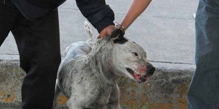 En las imágenes, el animal de raza pequeña es pateado por un aparente vecino de la zona y a consecuencia se observa convaleciente por el daño recibido.