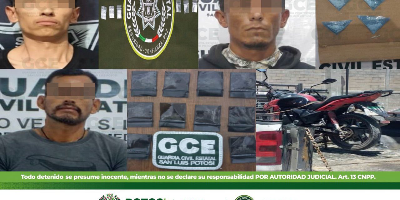 Por último, en el municipio de Matehuala en la zona Altiplano, la Guardia Civil Estatal detuvo a Gustavo de 30 años de edad tras asegurarle cuatro dosis de la droga “cristal”.