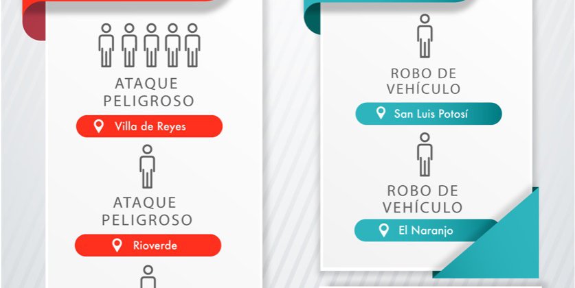 En cuanto a flagrancias, se detuvieron a dos personas por el delito de robo de vehículo en casos distintos: uno en la zona metropolitana y el otro en el municipio de El Naranjo.