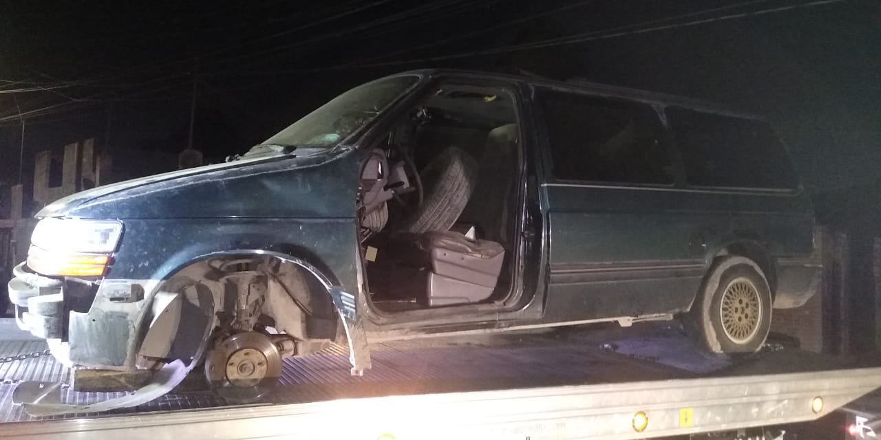 Sobre calle Galeana, en la colonia El Morro, Policías Estatales localizaron una camioneta Chrysler, tipo Voyager, color verde, modelo 1993, la cual cuenta con reporte de robo de la colonia Rivas Guillén.
