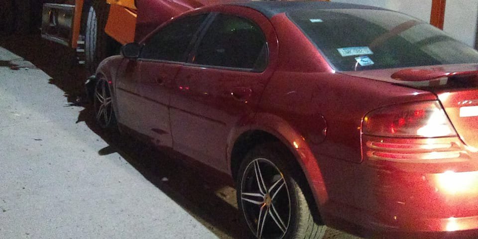 Un sujeto en estado de ebriedad impactó su automóvil contra un camión de carga estacionado en la calle Emiliano Zapata del ejido Puente del Carmen, sin que hasta el momento se conociera la identidad.
