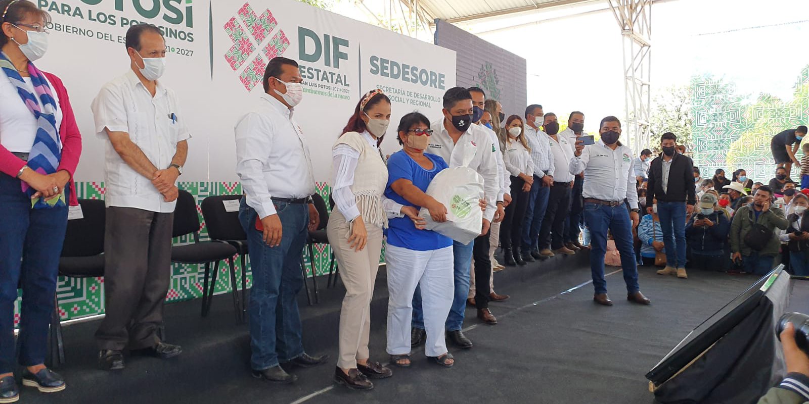 “Me queda muy claro, que sumaremos esfuerzos juntos, porque compartimos el mismo anhelo, que las familias de Rioverde tengan mejores oportunidades de desarrollo”, preció el alcalde Arnulfo Urbiola y luego simbólicamente junto a la presidenta del DIF, Karina Quintero, entregó becas alimentarias entre los beneficiarios.