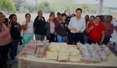 Huevo, pollo y frijol lleva Oscar Bautista a familias, y celebra Día del Niño en Guadalcázar