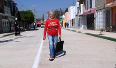 La calle Santa Catarina en Soledad fue rehabilitada con concreto hidráulico y servicios nuevos; habitantes reconocen la gestión del alcalde Juan Manuel Navarro.