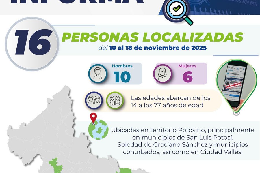 FGESLP localiza a 16 personas reportadas como no localizadas en el Estado