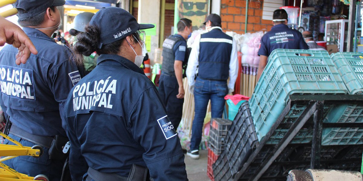 SAN LUIS POTOSÍ, SLP.- La Secretaría de Seguridad Pública del Estado (SSPE), a través de los elementos de Fuerza Metropolitana Estatal (FME), continúan en apoyo a los operativos llevados a cabo por la Comisión Estatal de Protección contra Riesgos Sanitarios, (Coepris), en donde participan elementos de Policía Municipal, Guardia Nacional, Protección Civil e Inspectores de la Dirección de Comercio Municipal.