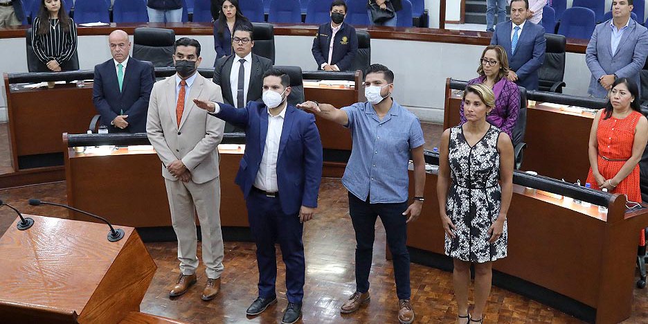 Posteriormente en sesión solemne del tercer periodo extraordinario de sesiones, y con la presencia de Noé Lara Enríquez Oficial Mayor del Gobierno del Estado como representante del Ejecutivo del Estado y de la magistrada Olga Regina García López presidenta del STJE, rindieron protesta Víctor Hugo Liceaga Rojas y Edwin Michel Hernández Viña como consejeros de la Comisión Estatal de los Derechos Humanos (CEDH) del 22 de agosto del año en curso al 31 de marzo del 2025.
