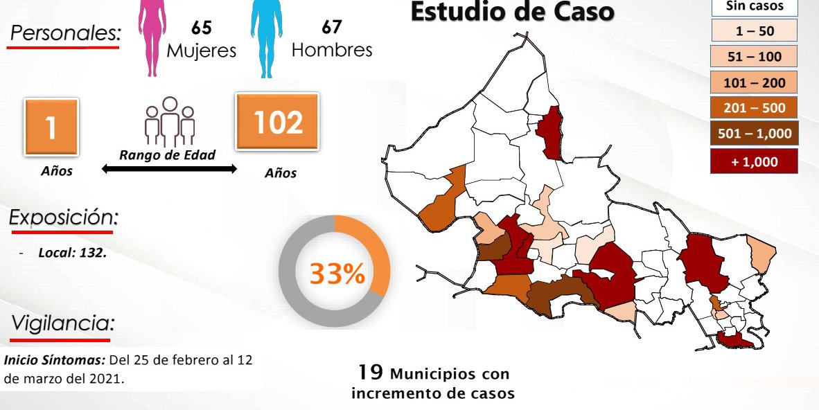 Cabe señalar que son 65 mujeres y 67 hombres con un rango de edad de 1 a 102 años, todos de tipo local.