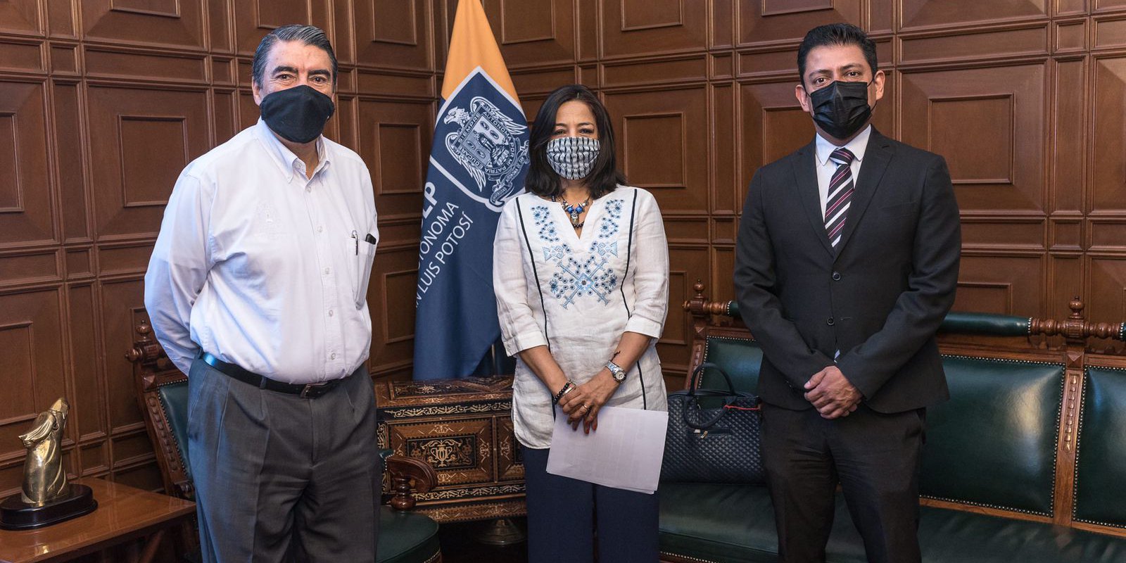 San Luis Potosí.- El rector de la Universidad Autónoma de San Luis Potosí (UASLP), Dr. Alejandro Zermeño Guerra, sostuvo una reunión con la Mtra. Laura Elena Fonseca Leal consejera presidenta del Consejo Estatal Electoral y de Participación Ciudadana (CEEPAC), con el objetivo de revisar los detalles del debate que se llevará a cabo el próximo domingo 9 de mayo a las 19:00 horas, con los nueve candidatos a la Gubernatura del Estado.