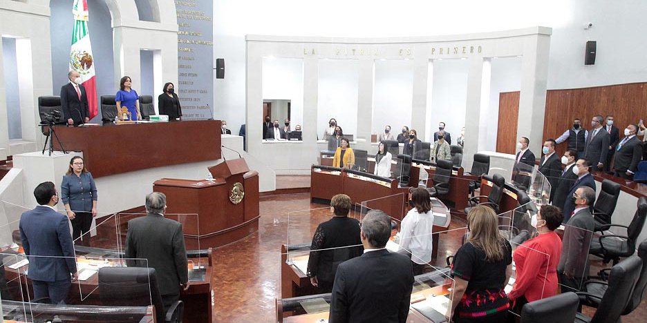 Al Inicio de la Sesión Solemne, se realizó un Toque de Silencio en memoria de los fallecidos a la fecha, en San Luis Potosí, a causa del Coronavirus Covid-19.