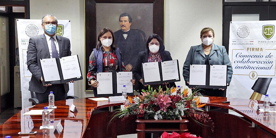 La firma del convenio de colaboración estuvo a cargo de la presidenta de la Directiva del Congreso del Estado, diputada Vianey Montes Colunga, y la Magistrada Presidenta Olga Regina García López, Presidenta del Supremo Tribunal de Justicia del Estado, donde se destacó que “el convenio que hoy suscribimos tiene como objetivo robustecer y hacer más eficiente la actividad Legislativa, ya que este será un medio para contar, con la aportación invaluable de personas que se dedican a la carrera judicial, y nos auxiliara en la elaboración de conceptos de derechos que ellos conocen mejor que nosotros”.