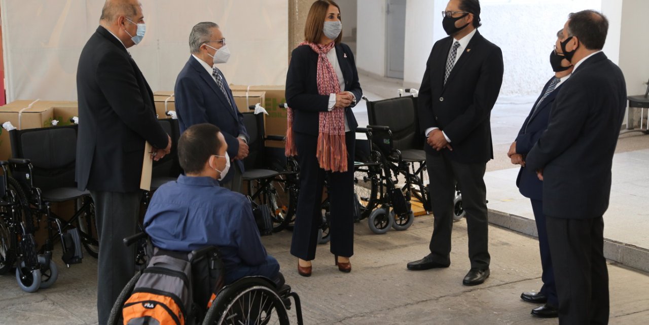 En este sentido, el DIF Estatal y el Club Rotario de San Luis Potosí A.C., se han unido para apoyar a personas con discapacidad mediante la entrega de sillas de ruedas. Desde el 2016 a la fecha, el Club ha recibido 100 ayudas técnicas y con sus aportaciones, se llegará a 200 potosinas y potosinos con discapacidad que reciban este beneficio.