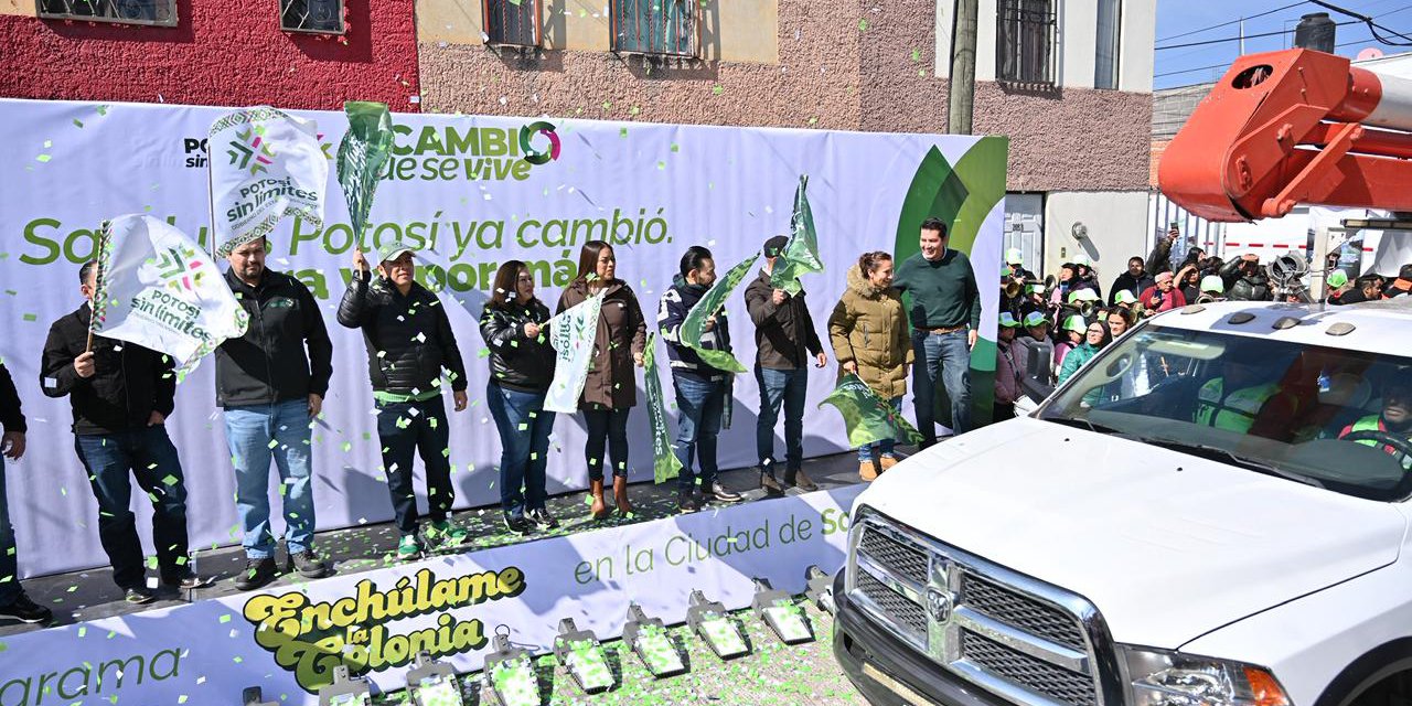 El Gobernador de San Luis Potosí Ricardo Gallardo Cardona, dio el banderazo de arranque al nuevo programa “Enchúlame la Colonia”, con el que modernizará 200 colonias de la zona metropolitana durante 2026, con la participación de diversas cuadrillas de trabajo para intervenir vialidades con acciones de bacheo y pavimentación, renovar luminarias, rehabilitar áreas verdes, instalar juegos y aparatos de ejercicio, entre otras, con una inversión histórica de 600 millones de pesos.