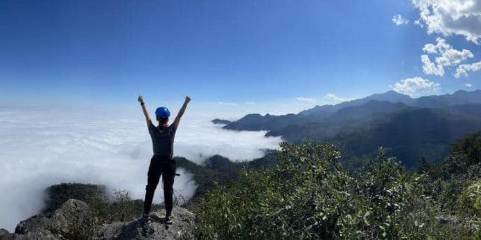 El recorrido se realizó a través de la “Vía Ferrata”, ruta que incluye etapa de senderismo en el espectacular Bosque de Niebla, y escalada sobre riscos en la etapa final a la cumbre con longitud de 40 metros. La ruta, que incluye varias horas de recorrido, ofrece la oportunidad de disfrutar de paisajes espectaculares, la belleza del Bosque y la vista desde una de las principales cumbres de las Huastecas de México.