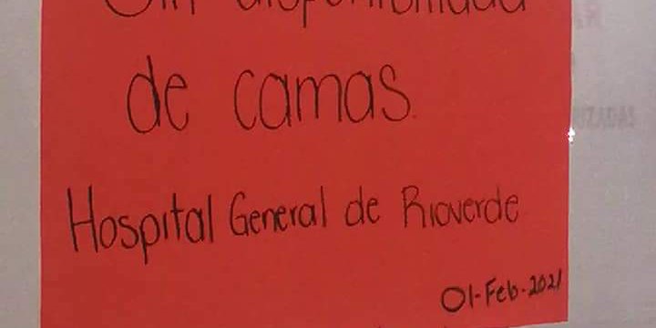 Después de que circuló la imagen de un letrero en el Hospital General de Rioverde sobre la falta de disponibilidad de camas para pacientes con coronavirus, la situación fue confirmada por el Comité Estatal de Seguridad en Salud.