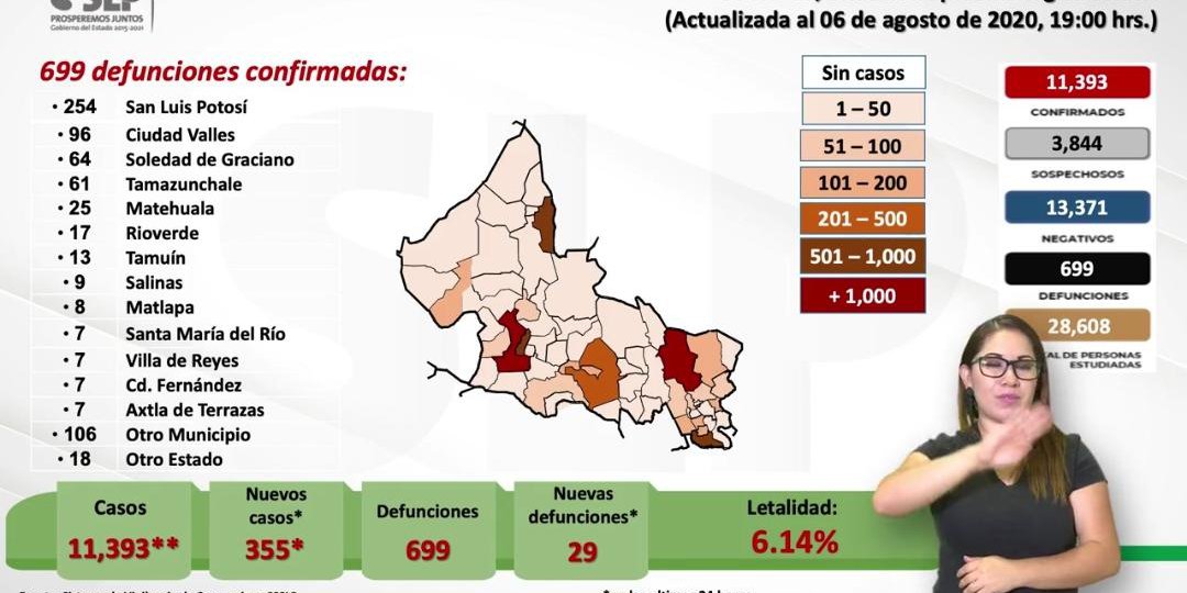 De las 670 muertes por coronavirus, la capital potosina concentra el mayor número de decesos, con 254. Ciudad Valles registra 96 y Soledad 64 defunciones.
