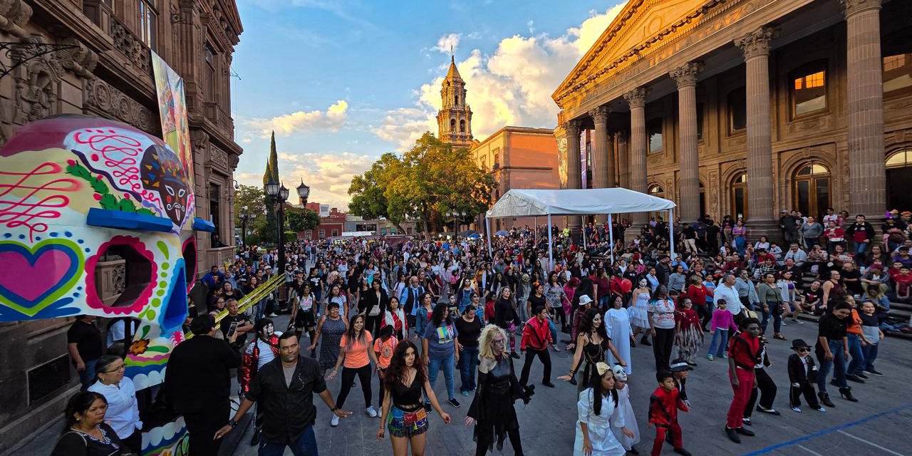 Miles de niñas, niños, jóvenes y adultos se sumaron a esta colorida coreografía que transformó el Centro Histórico en un escenario lleno de energía, creatividad y talento potosino. Disfrazados como zombis y personajes emblemáticos del clásico musical, los participantes dieron vida a un espectáculo que fortaleció la convivencia social y el orgullo cultural de San Luis Potosí.