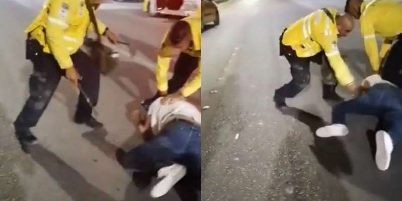 El video que comenzó a circular en redes sociales dura 19 segundos y se observa a un elemento de Vialidad que somete a un ciudadano mientras el otro le pega en la espalda en nueve ocasiones con una macana y le repite a su compañero: “No lo sueltes al wey”, “No lo sueltes al wey”, mientras los demás elementos corren tras otras personas que ya no se alcanza a ver en el video.