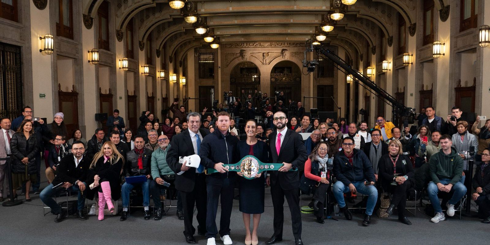 *“A nombre de toda la comunidad del boxeo, de México y del mundo, felicitarla señora Presidenta, porque usted es la campeona de las mujeres, la campeona del mundo, la campeona de la paz”*, resaltó.