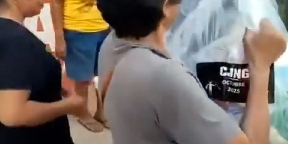 "De parte del Cártel de Jalisco Nueva Generación", precisó uno de ellos, mientras reparte la ayuda, marcada con las siglas CJNG.