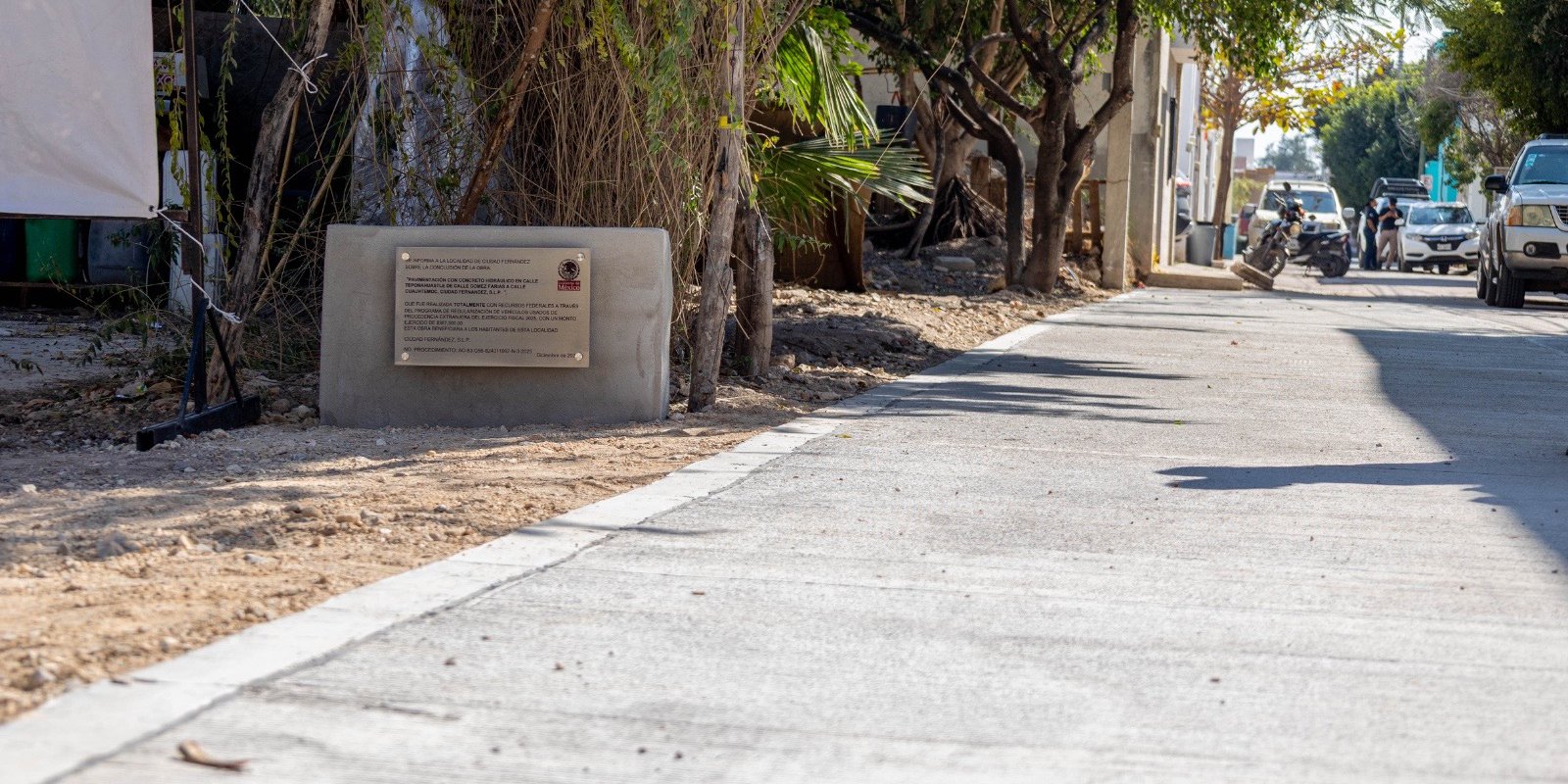 Asimismo, se efectuó el suministro y colocación de 259.28 metros cuadrados de pavimento de concreto hidráulico con un espesor de 15 centímetros; corte y sellado de juntas de dilatación cada tres metros; limpieza general durante y al término de la obra, incluyendo el acarreo de escombro, además del suministro y colocación de la placa informativa correspondiente.