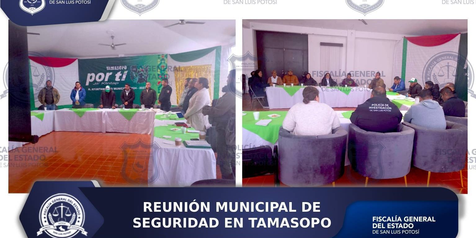 La Fiscalía General del Estado de San Luis Potosí (FGESLP), a través de personal de la Dirección General de Métodos de Investigación (DGMI), participó en la décima reunión del Consejo de Seguridad Pública Municipal de Tamasopo, con el objetivo de fortalecer la coordinación interinstitucional en materia de seguridad y justicia.