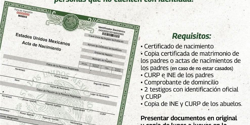 Camarillo Morquecho detalló que los requisitos para llevar a cabo el registro son: certificado original de nacimiento, copia certificada del acta de matrimonio de los padres (en caso de estar casados), CURP e INE de los padres, comprobante de domicilio, así como la presencia de dos testigos con identificación oficial y CURP.