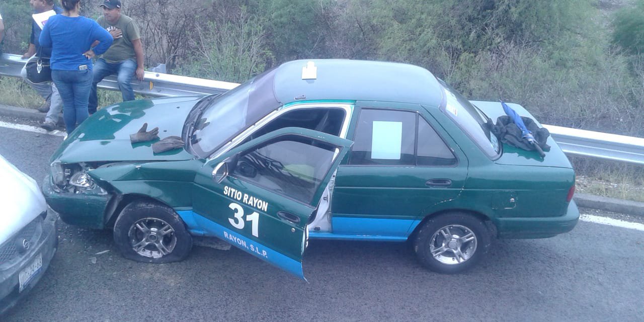 Según trascendió, el conductor del automóvil Chevy, color gris se dirigía en sentido contrario hacia Rioverde, pero al llegar al entronque se encontró con el taxi que llevaba pasaje al Crucero de Rayón.